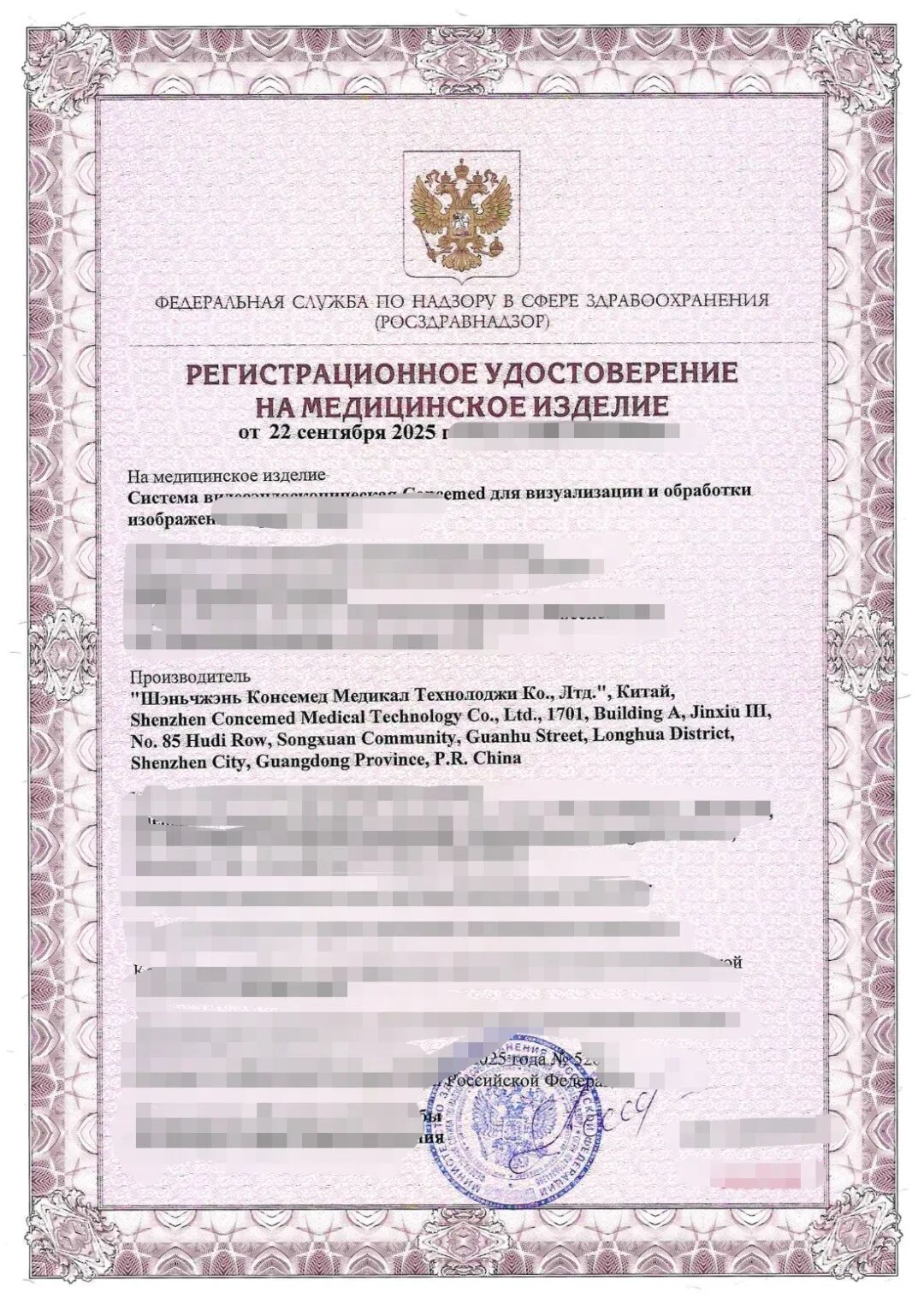这张沉甸甸的“市场通行证”,不仅是对科思明德产品卓越品质与国际标准的高度认可,更是我们全球化战略布局中至关重要的一步。它标志着科思明德电子内窥镜正式获准进入俄罗斯市场,为当地用户带来领先的技术与解决方案。
